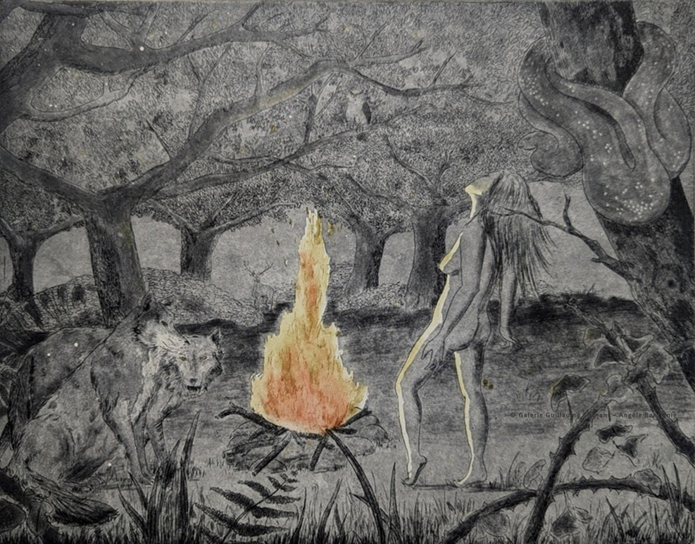 #Wald #Wolf #SchwarzesKäppchen #Radierung #Druckgrafik #Kunstdruck #Mezzotinto