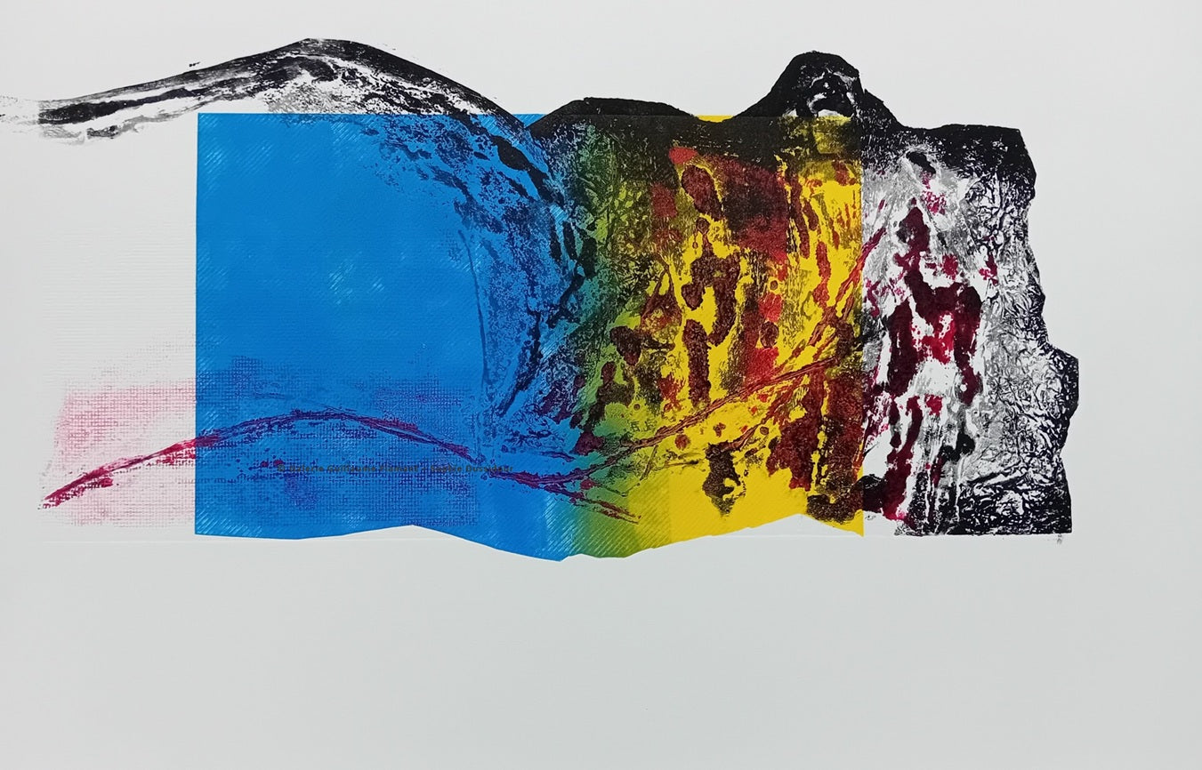Monotype by Sophie Dussidour. Mixed media etching, string, aquatint, rhenalon