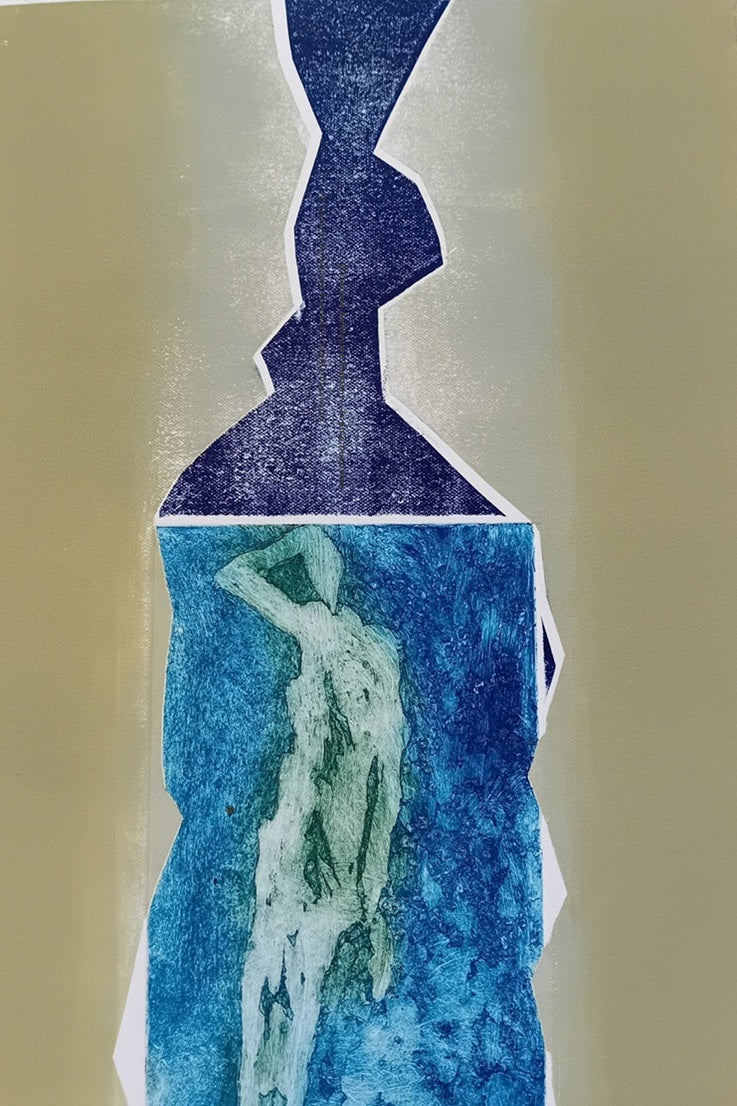Monotype by Sophie Dussidour. Mixed media etching, string, aquatint, rhenalon