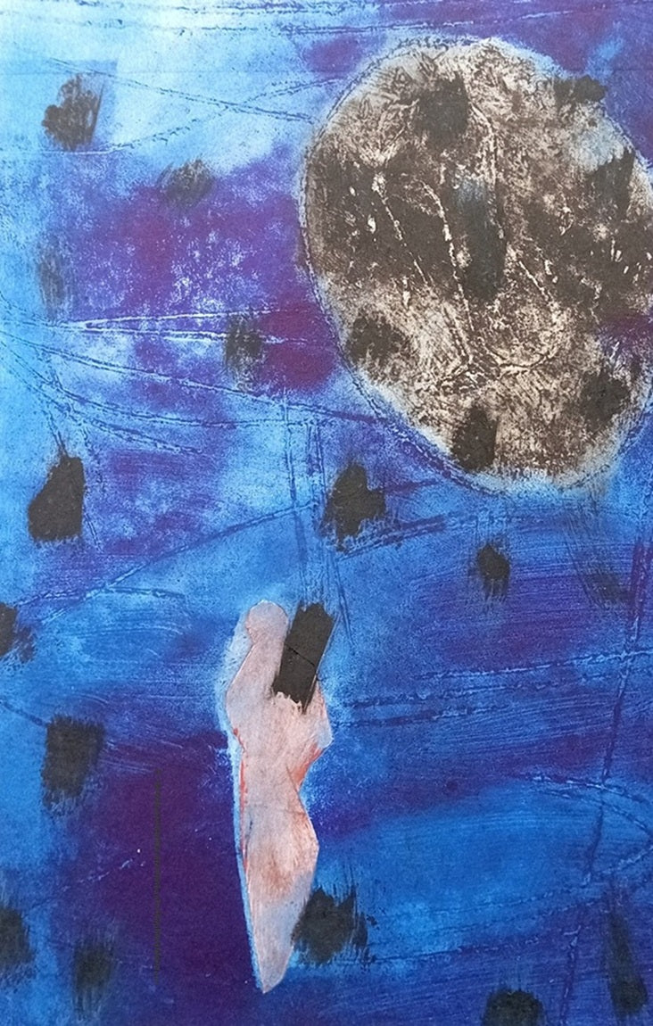 Monotype by Sophie Dussidour. Mixed media etching, string, aquatint, rhenalon