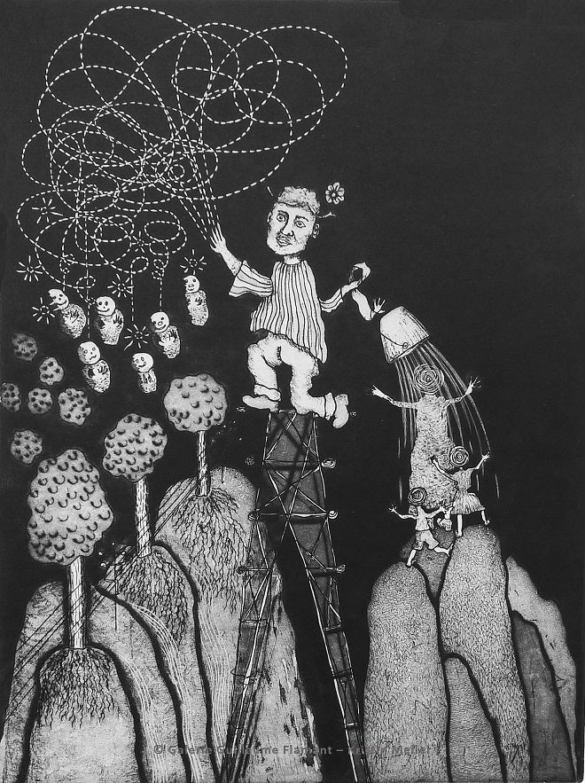 Technique : Eau Forte, Manière Noire et Gravure en taille douce